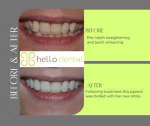 At Hello Dental, your smile is our priority. We know that stained or discoloured teeth can affect your confidence, which is why we offer professional teeth whitening that’s both safe and effective. Unlike shop-bought kits, our dentist-supervised whitening ensures outstanding, even results that enhance your smile — without harming your enamel.